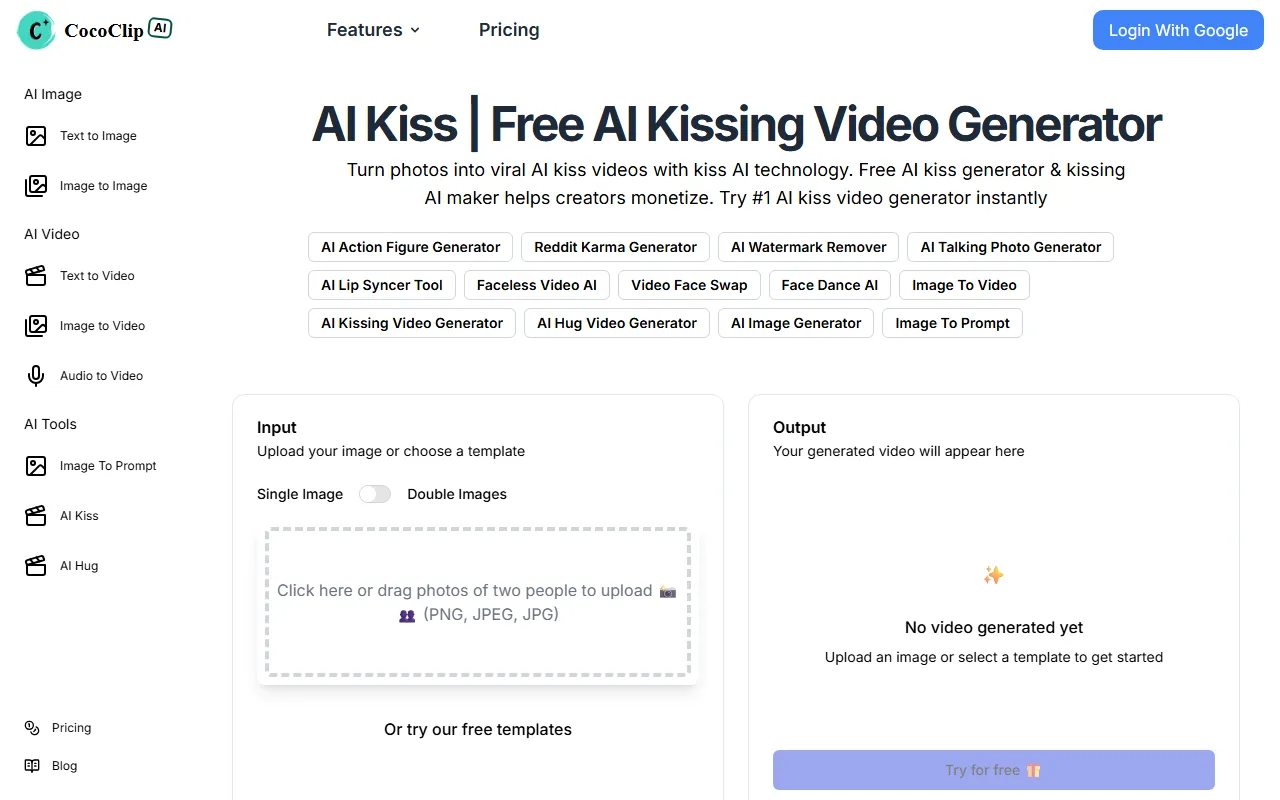 AI Kiss transforms photos into romantic kissing videos easily, creating magical, shareable memories.