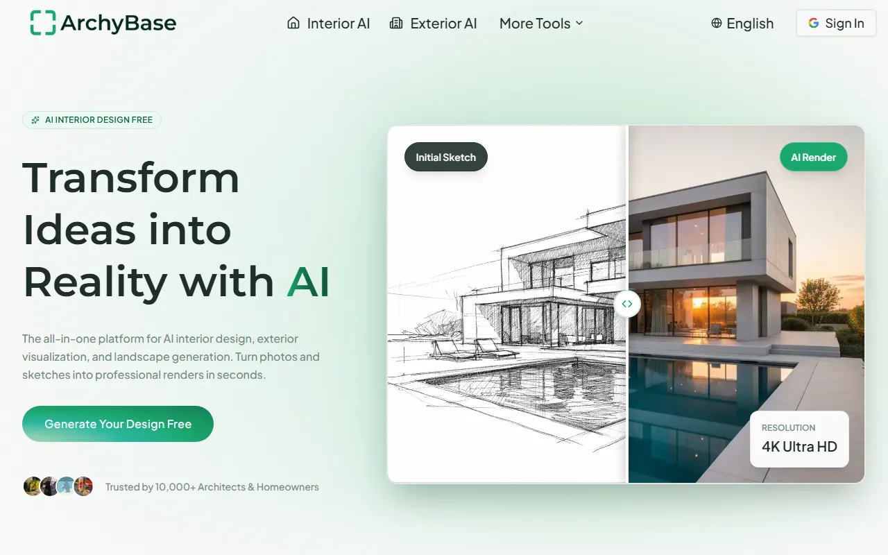 ArchyBase enters the AI Image Generation arena as a purpose-built AI solution for designers, artists, and creative professionals. ArchyBase is a browser AI platform for fast, photorealistic architectural and interior design. In a market crowded with generic tools, ArchyBase distinguishes itself through its specialized focus on delivering measurable results in image creation and visual design and a user experience designed to get you productive from day one.