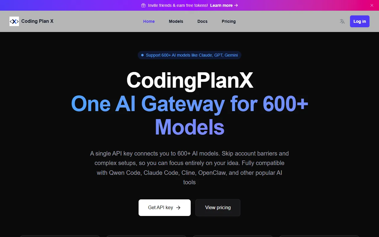 Coding Plan X offers fast, cost-effective access to 600+ AI models with seamless integration and unified API.