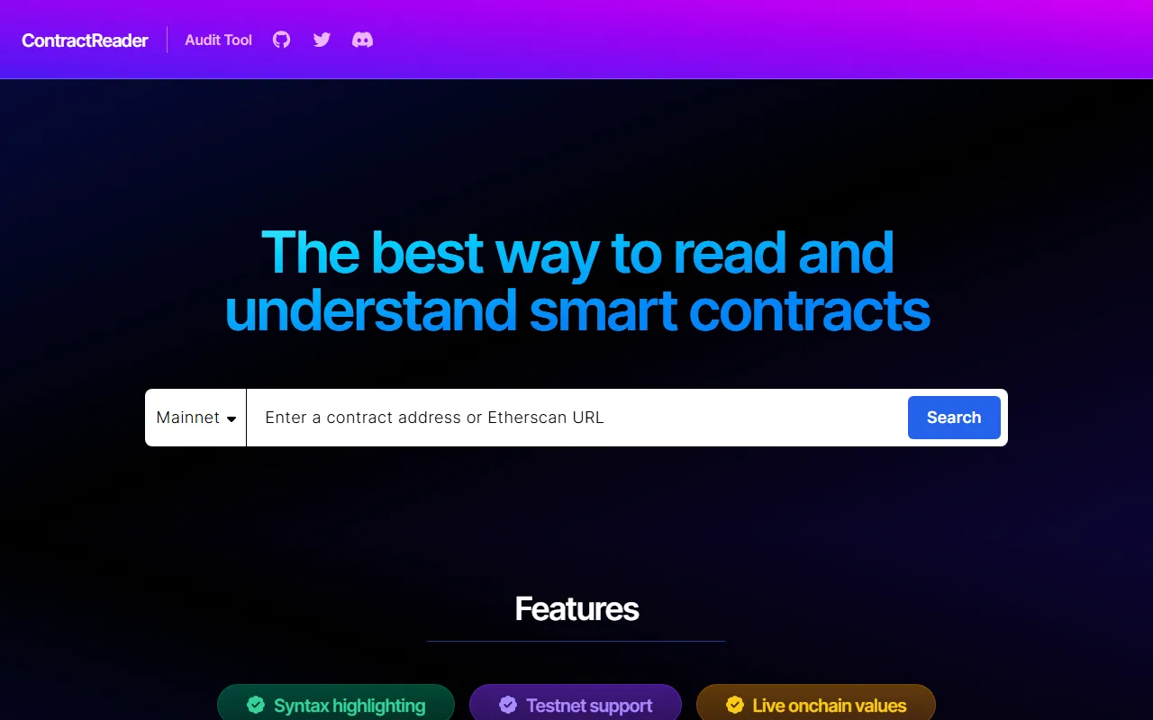 Simplify Ethereum smart contracts with intuitive reading, interaction, and real-time auditing features.