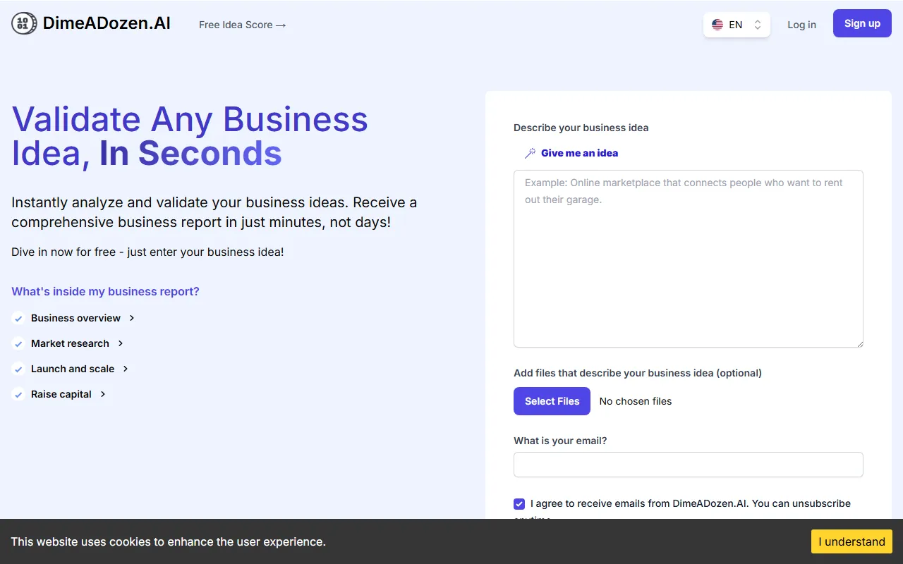 Validate business ideas effortlessly with AI, offering market insights, pitches, and competitive analysis.