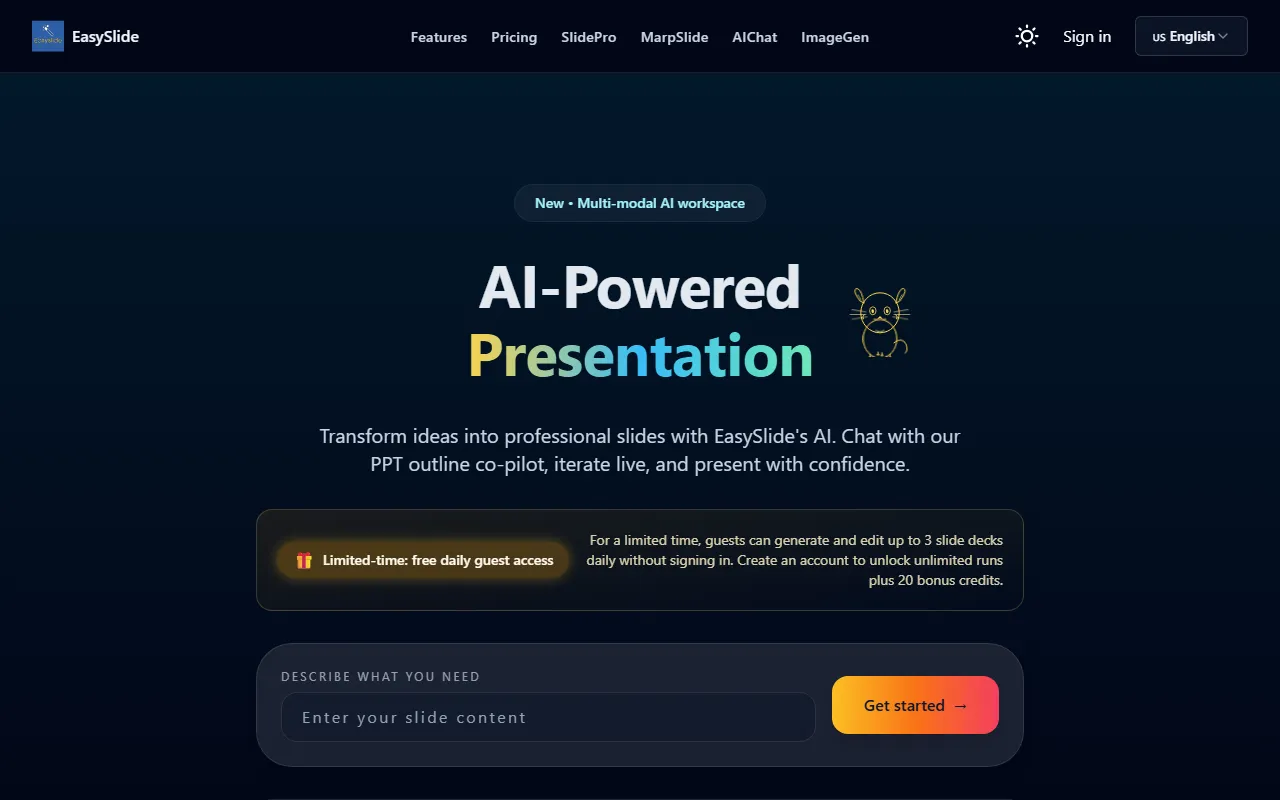 EasySlide: AI-powered tool that quickly creates professional presentations with smart slides, custom images, and easy editing.