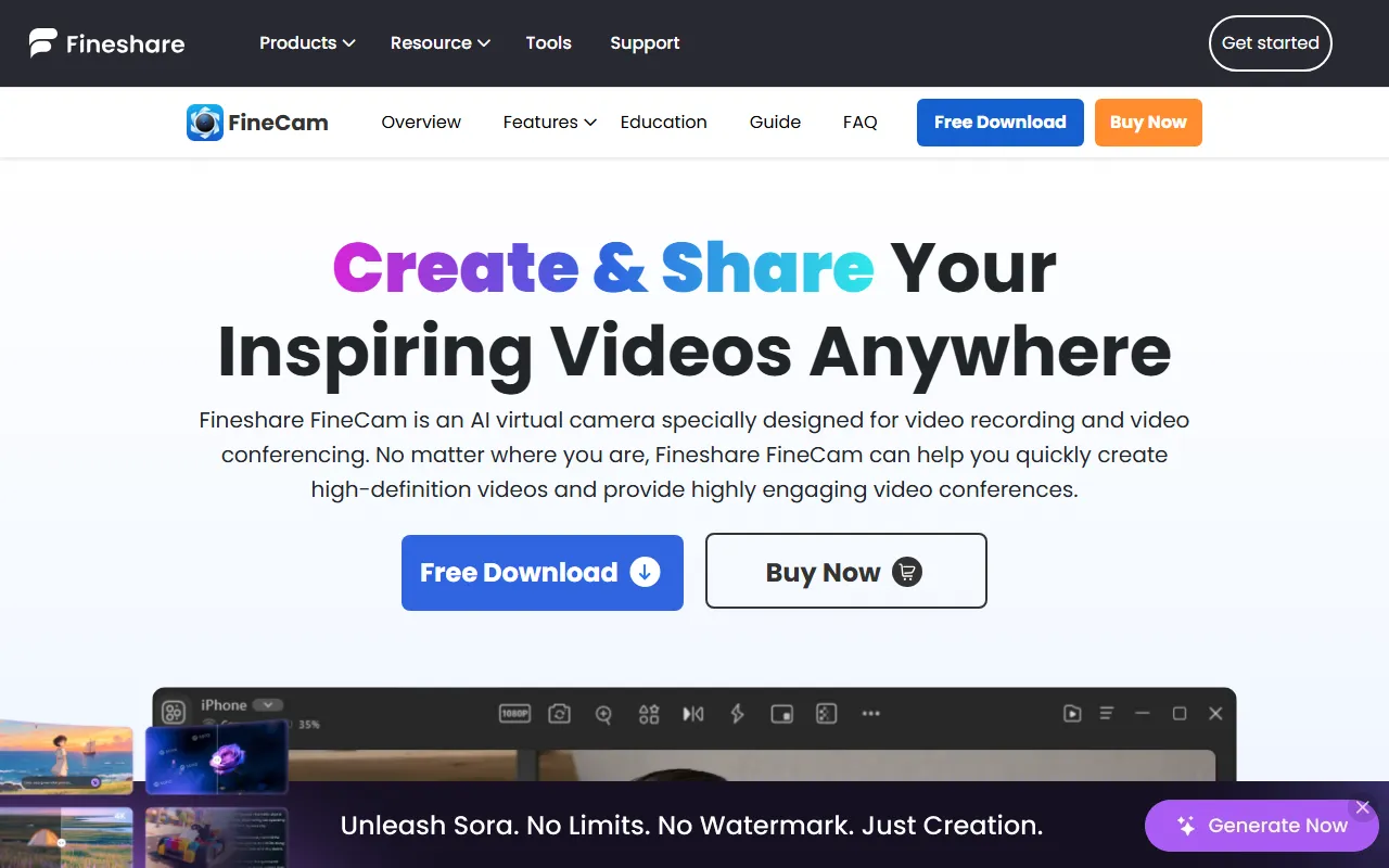 - AI video creation: FineCam provides robust ai video creation functionality, allowing users to streamline with precision and efficiency. This feature is powered by advanced AI models that adapt to your specific use case and improve over time based on your interactions.