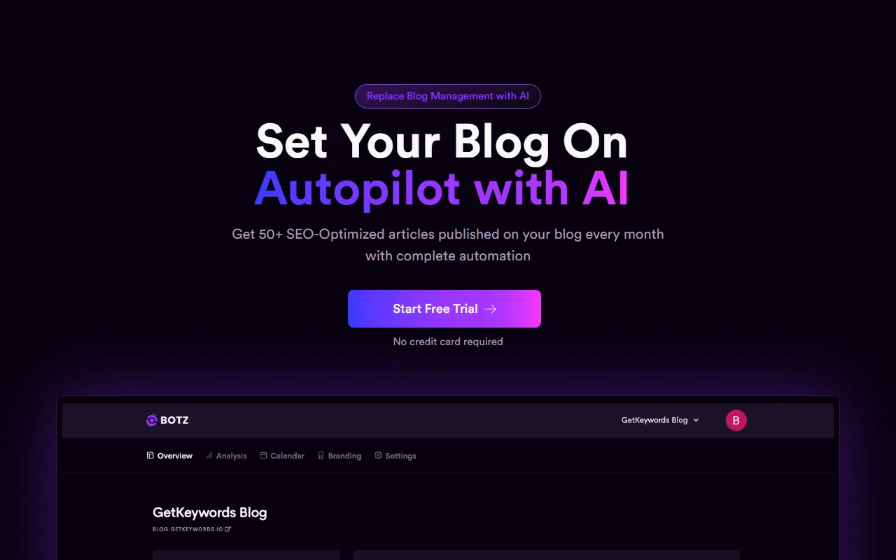 In the evolving world of content creation and writing, finding the right tool can be the difference between thriving and merely surviving. GetBotz has positioned itself as a compelling option for writers, marketers, and content creators who demand more from their AI-powered solutions. Automate your blog with AI: publish SEO-optimized articles monthly while tracking Google rankings effortlessly.