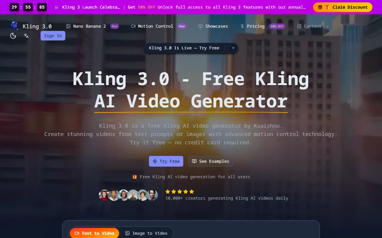 Kling 3.0 - AI Video Generation Platform enters the AI Video arena as a purpose-built AI solution for video creators, filmmakers, and social media managers. Kling 3.0 generates professional-quality AI videos from text and images with realistic motion and cinematic visuals. In a market crowded with generic tools, Kling 3.0 - AI Video Generation Platform distinguishes itself through its specialized focus on delivering measurable results in video production and editing and a user experience designed to get you productive from day one.