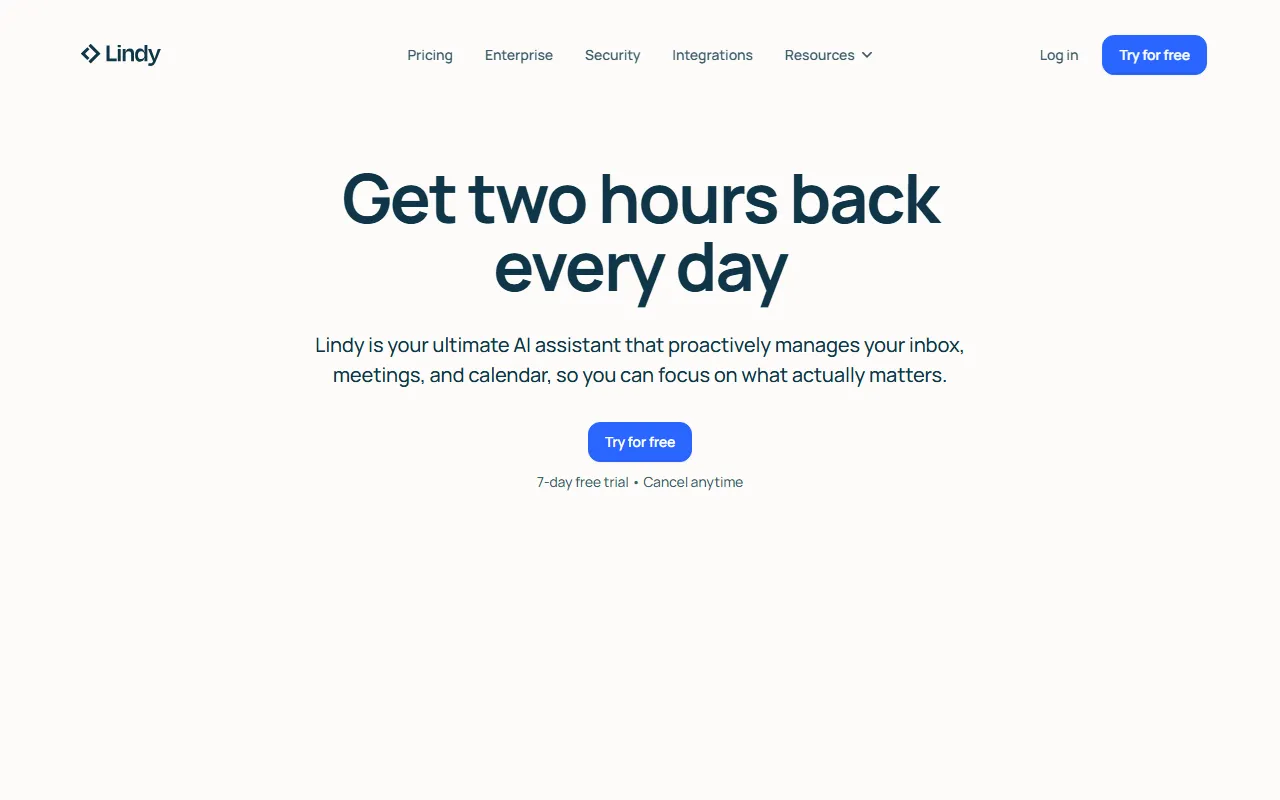 - Productivity apps: Lindy includes a dedicated productivity apps engine that processes your inputs intelligently. The system learns from each interaction, delivering increasingly personalized and accurate results the more you use it.