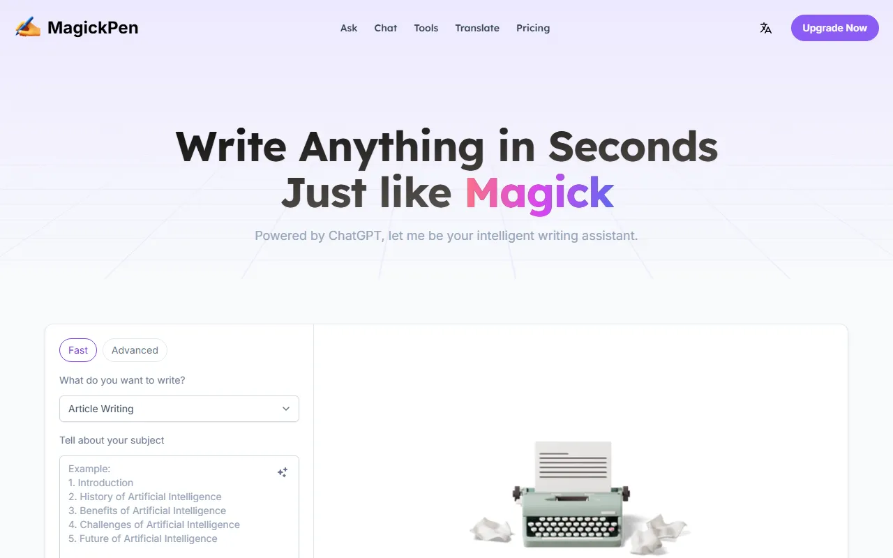 - AI writing: MagickPen provides robust ai writing functionality, allowing users to resolve with precision and efficiency. This feature is powered by advanced AI models that adapt to your specific use case and improve over time based on your interactions.