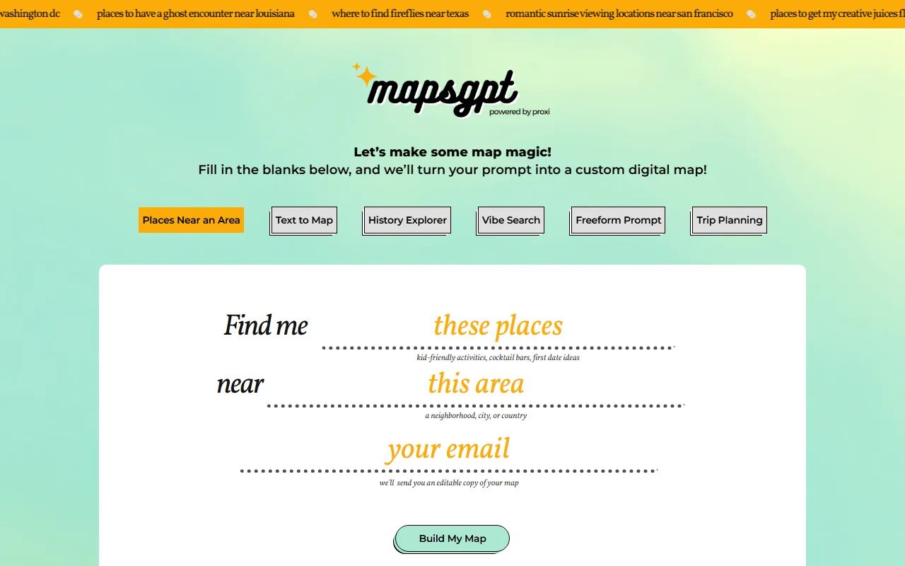 MapsGPT enters the AI Productivity arena as a purpose-built AI solution for professionals, teams, and business leaders. Discover local gems effortlessly. Input your preferences, receive a tailored map via email. In a market crowded with generic tools, MapsGPT distinguishes itself through its specialized focus on delivering measurable results in productivity and task management and a user experience designed to get you productive from day one.