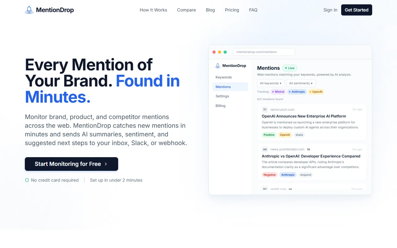 MentionDrop delivers fast, AI-powered brand alerts from 8bn web pages daily, filtering noise.