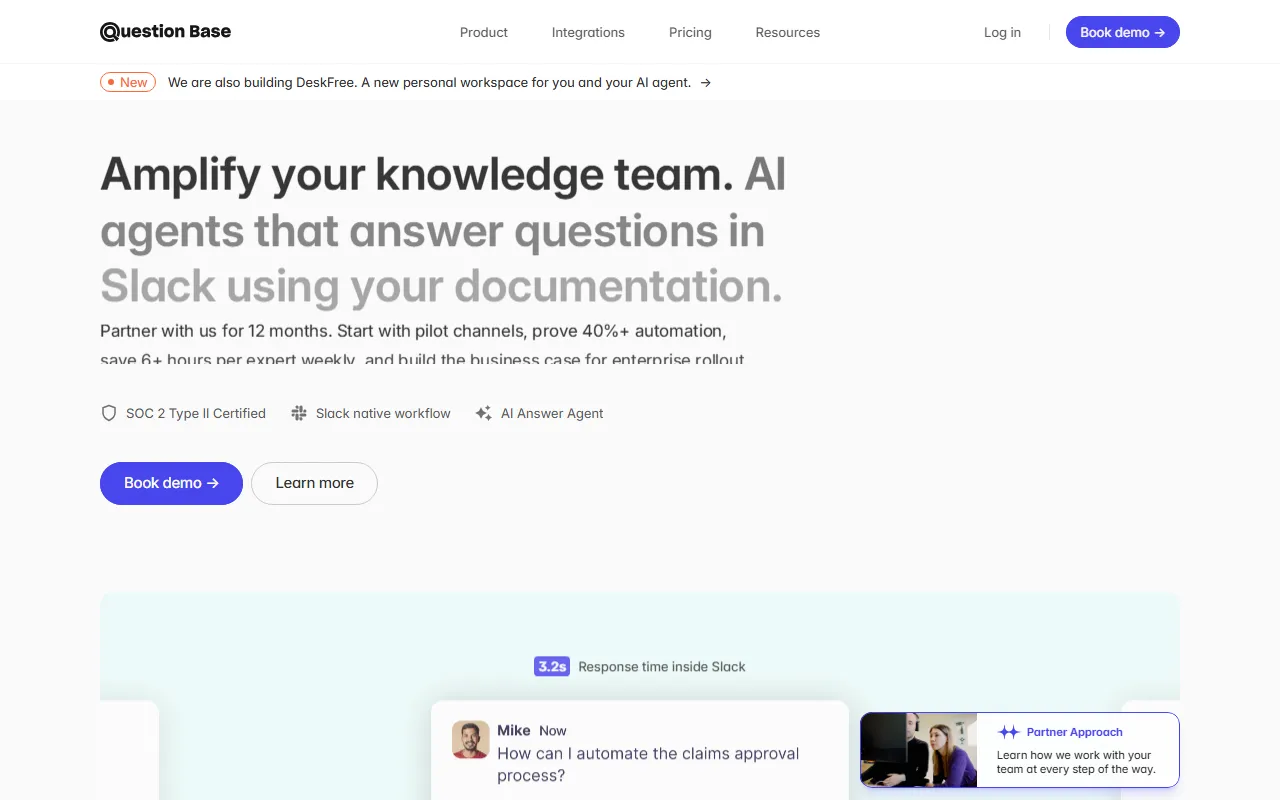 Question Base enters the AI Customer Support arena as a purpose-built AI solution for support teams, service managers, and CX leaders. Instantly access team knowledge via Slack; AI answers questions within 3 seconds, boosting productivity. In a market crowded with generic tools, Question Base distinguishes itself through its specialized focus on delivering measurable results in customer experience and support and a user experience designed to get you productive from day one.