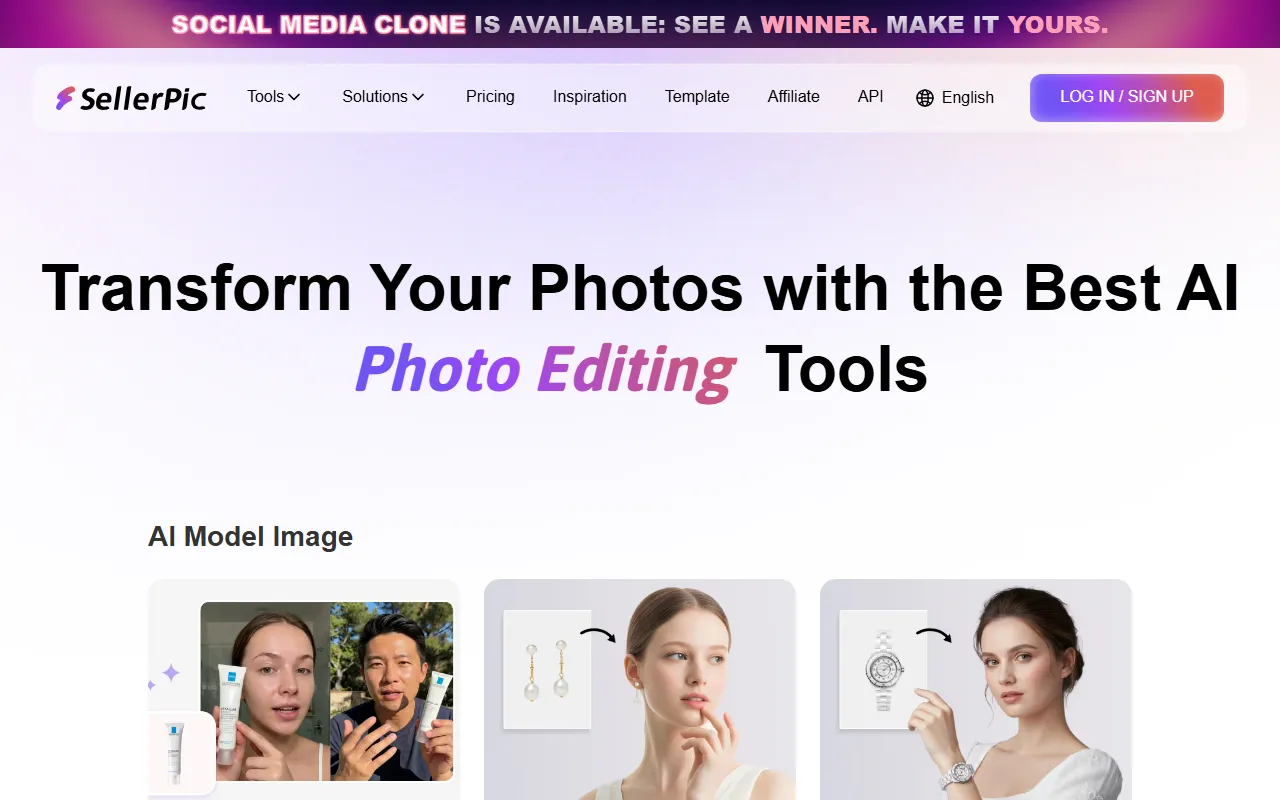 SellerPic: AI-powered platform for e-commerce visual content creation, editing, and virtual try-on.