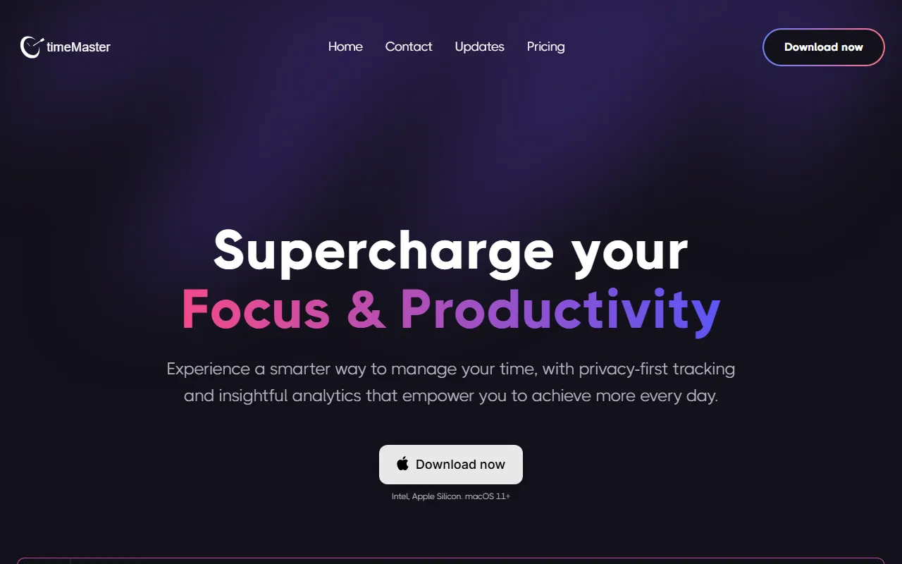 Boost productivity effortlessly with TimeMaster: automated tracking, insights, and project management for effective habits.