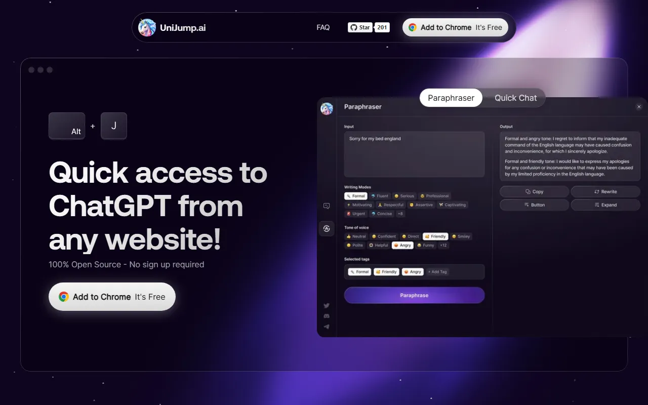 For marketers, growth hackers, and brand managers seeking smarter ways to handle digital marketing and growth, UniJump presents an intriguing proposition. Seamlessly access ChatGPT anywhere online for improved writing and instant inspiration—privacy assured. The platform aims to bridge the gap between complex AI technology and practical, everyday utility, making advanced capabilities accessible without requiring deep technical expertise.
