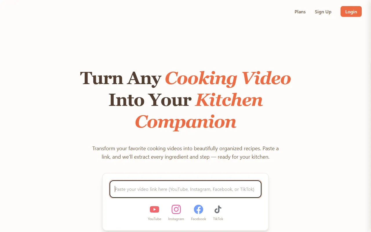 Transform cooking videos into easy recipes with step-by-step instructions and ingredient lists.
