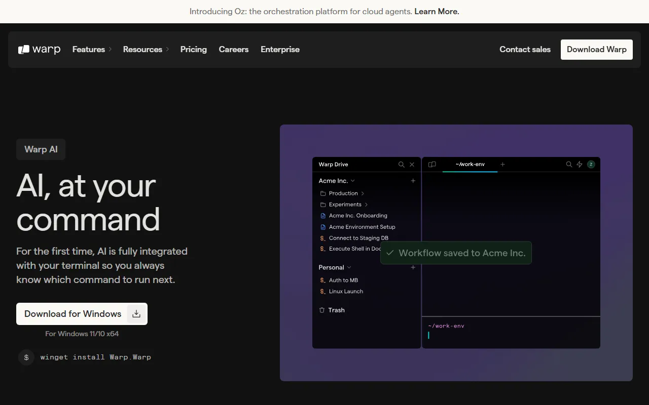 - Task automation: Warp AI includes a dedicated task automation engine that processes your inputs intelligently. The system learns from each interaction, delivering increasingly personalized and accurate results the more you use it.