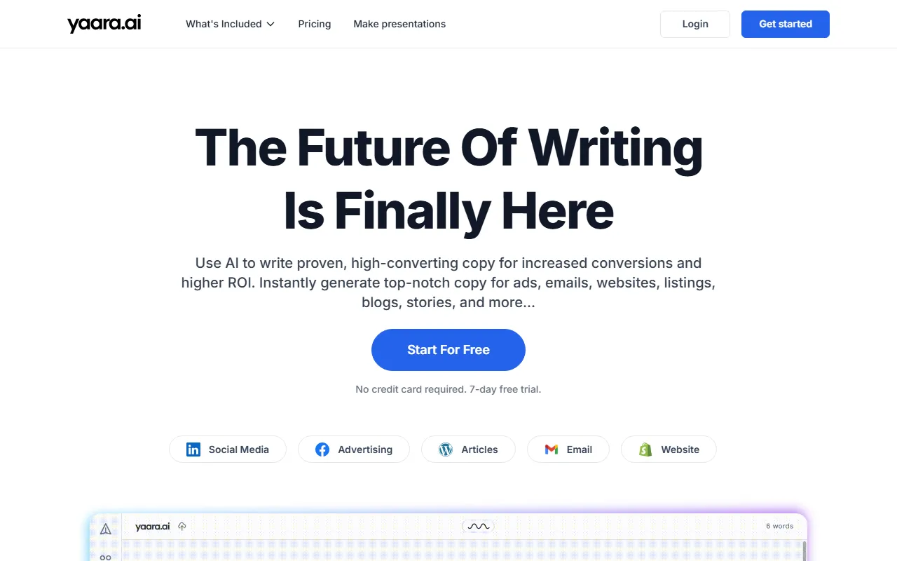 Yaara enters the AI Marketing arena as a purpose-built AI solution for marketers, growth hackers, and brand managers. Transform your writing with AI: create high-converting copy effortlessly across 25 languages. In a market crowded with generic tools, Yaara distinguishes itself through its specialized focus on delivering measurable results in digital marketing and brand growth and a user experience designed to get you productive from day one.