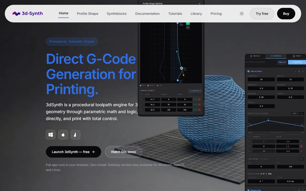 3dSynth.app is making waves in the AI Assistants space with its focused approach to AI-powered assistance and automation. 3DSynth generates real-time, math-based G-code with organic textures—no STL needed! Rather than trying to be everything to everyone, the platform has carved out a niche by concentrating on what professionals, teams, and everyday users actually need to assist more effectively.