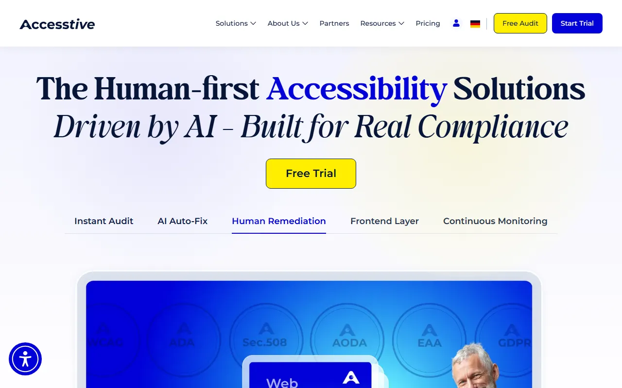 Accesstive is a human-first, AI-powered web accessibility and compliance platform that helps websites achieve and maintain WCAG, ADA, and Section 508 compliance through automated auditing, continuous monitoring, and expert support.