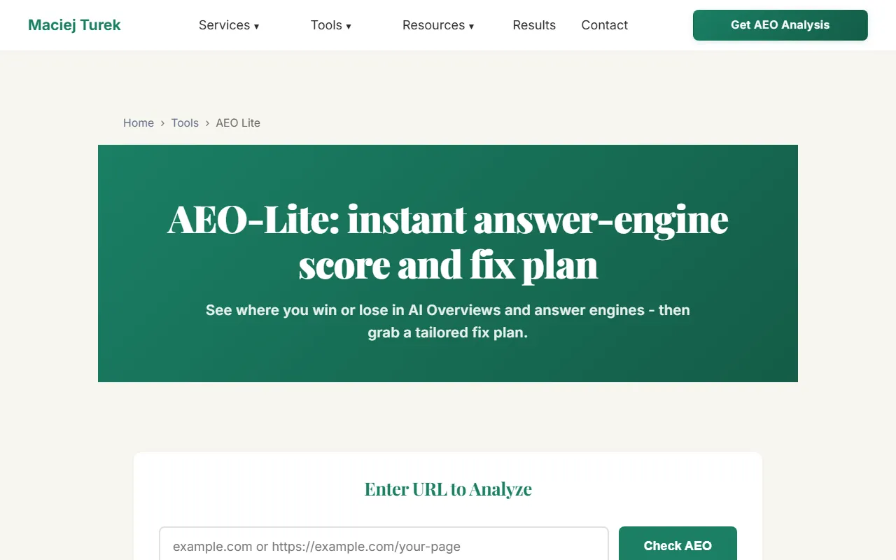 https://maciejturek.com/tools/aeo-lite.htmlReleased