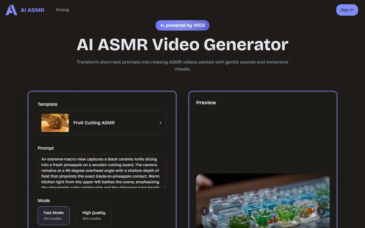AI ASMR is a paid tool, which signals the team's commitment to delivering professional-grade capabilities and ongoing support. While the exact pricing may vary based on your selected plan and usage requirements, the investment is positioned to deliver clear ROI for video creators, filmmakers, and social media managers who regularly work in video creation and editing and need reliable, high-quality output.