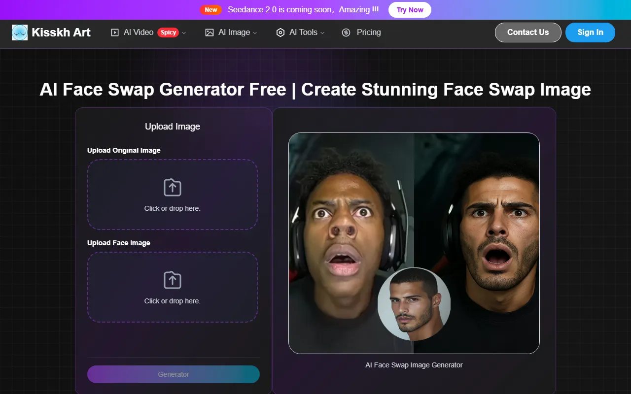 AI Face Swap Image Generator instantly creates realistic, seamless face swaps for creative and professional use.
