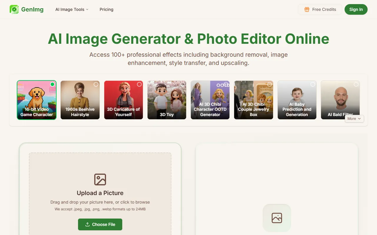GenImg: AI-powered image creation and editing with easy text prompts, pro effects, and fast workflow.