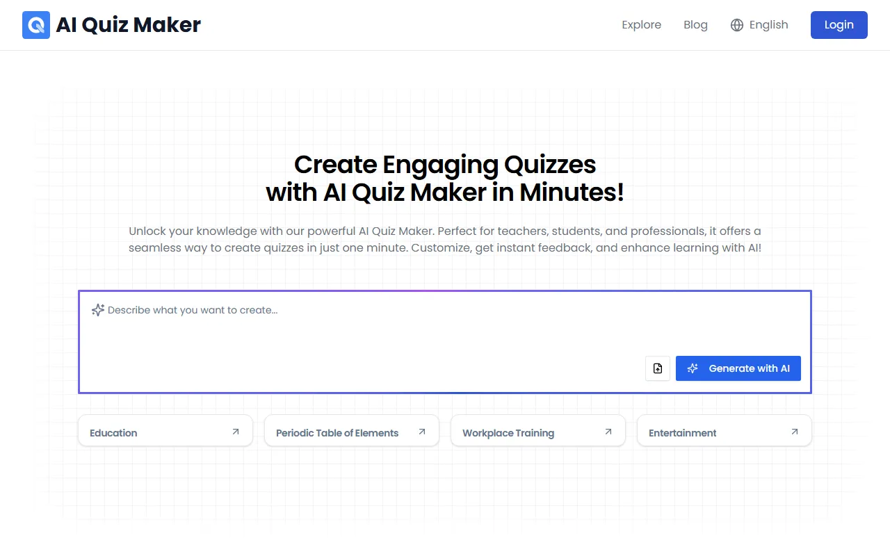 AI Quiz Generator creates custom, engaging quizzes quickly to enhance learning and assessment.