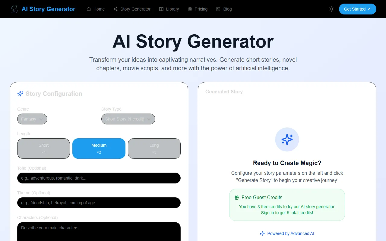 From the moment you open AI Story Generator, the workflow is designed to feel natural and efficient. The platform greets you with a clean, organized interface where your most common actions are immediately accessible. Whether you are starting a new project or continuing previous work, everything is just a click or two away, and the learning curve is minimal even for first-time users.