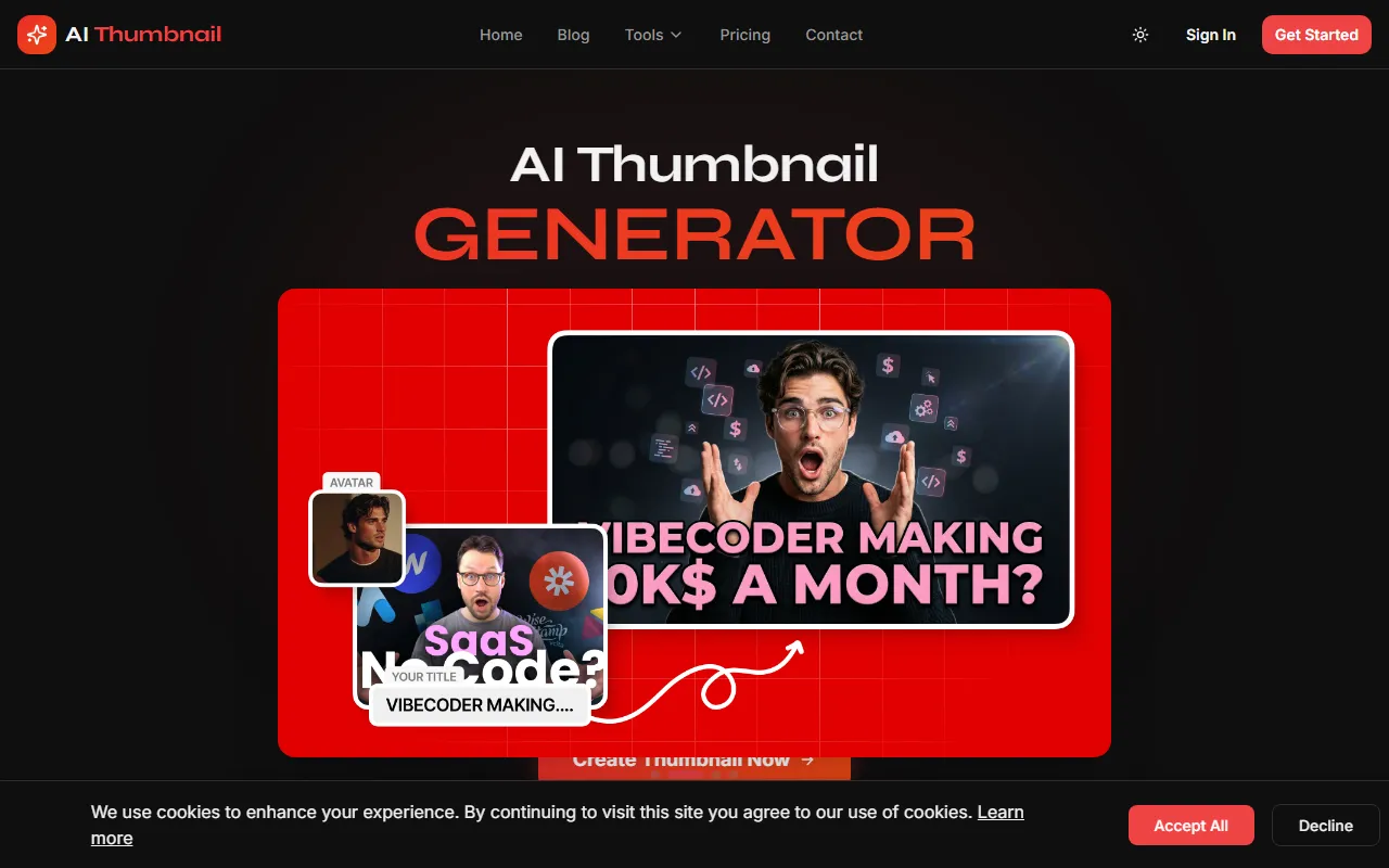 - Content marketing: AI Thumbnail includes a dedicated content marketing engine that processes your inputs intelligently. The system learns from each interaction, delivering increasingly personalized and accurate results the more you use it.