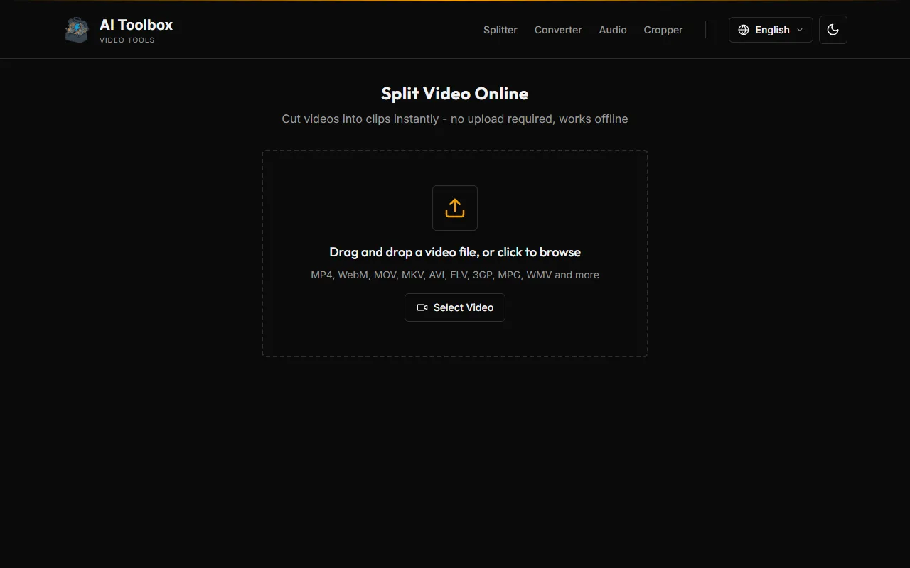 AI Toolbox Video Splitter: Fast, private, no-upload video splitting with versatile modes and no limits.