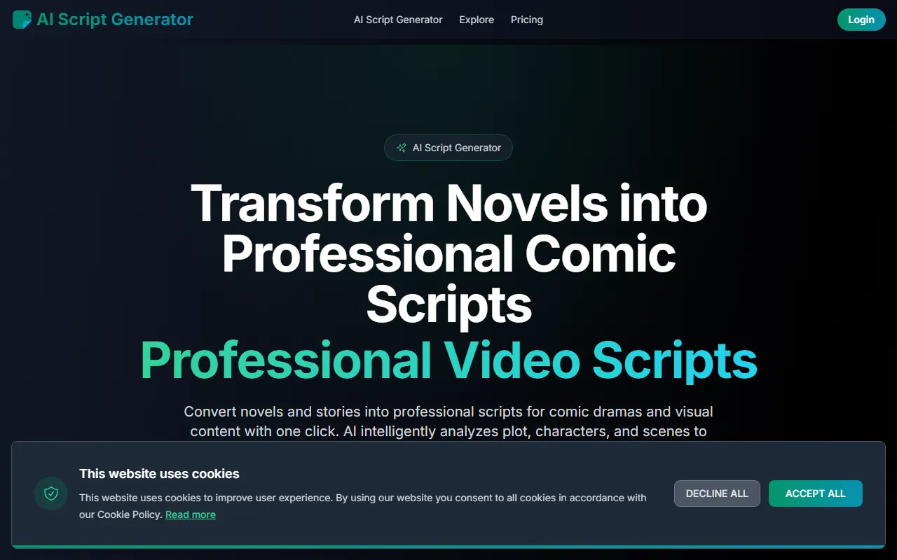 aiscriptgenerator enters the AI Video arena as a purpose-built AI solution for video creators, filmmakers, and social media managers. AI-powered tool converting novels into accurate, customizable comic scripts fast—no experience needed. In a market crowded with generic tools, aiscriptgenerator distinguishes itself through its specialized focus on delivering measurable results in video production and editing and a user experience designed to get you productive from day one.