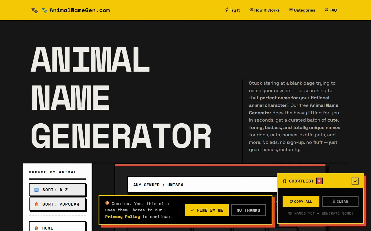 For professionals, teams, and business leaders seeking smarter ways to handle productivity and workflow optimization, Animal Name Generator presents an intriguing proposition. Fast, free animal name generator with unique, categorized names and easy one-click copying. The platform aims to bridge the gap between complex AI technology and practical, everyday utility, making advanced capabilities accessible without requiring deep technical expertise.