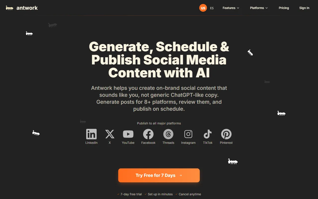 Antwork: AI-powered social media assistant that crafts, schedules, and personalizes on-brand content effortlessly.