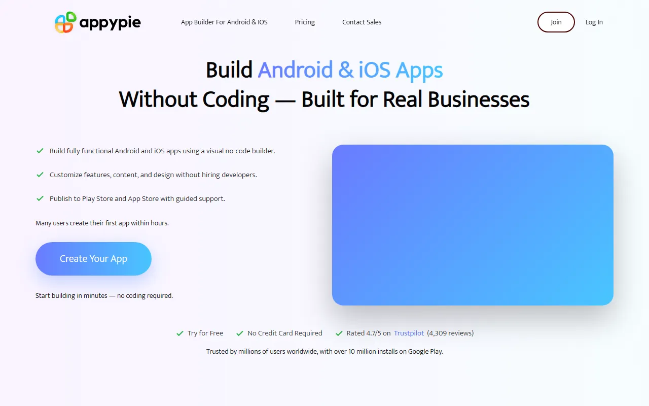 Appy Pie App Builder lets anyone easily create feature-rich mobile apps without coding skills.