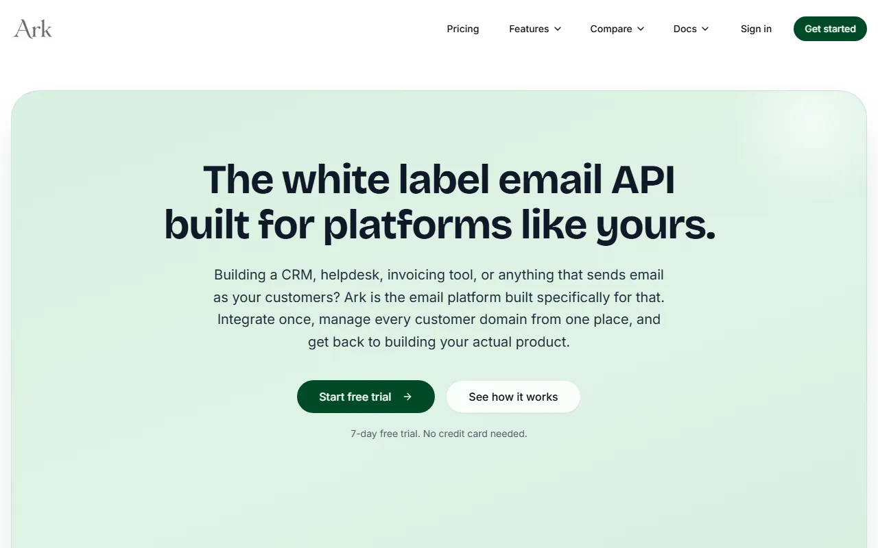 Ark: AI-powered email API with fast delivery, native MCP, easy integration, and cost-effective pricing.