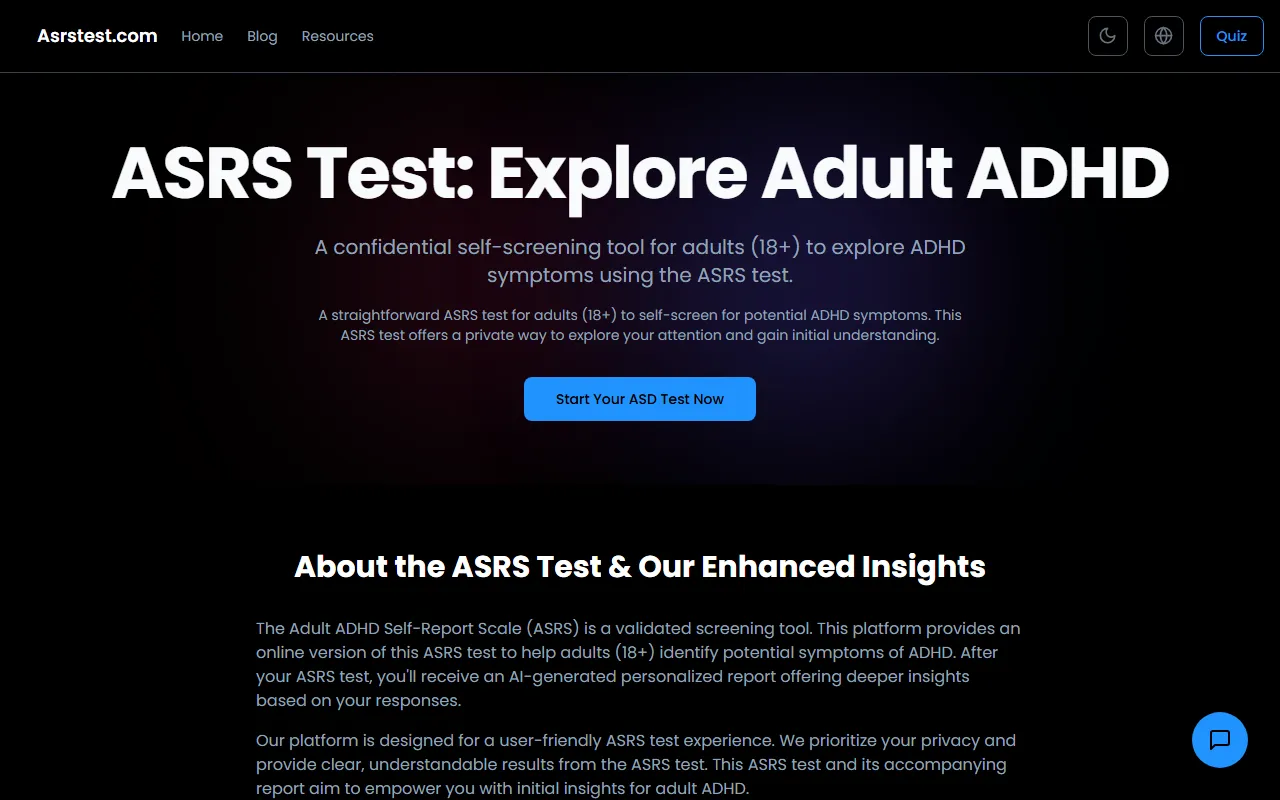ASRSTest.com provides instant, private WHO-endorsed adult ADHD screening with personalized AI reports.