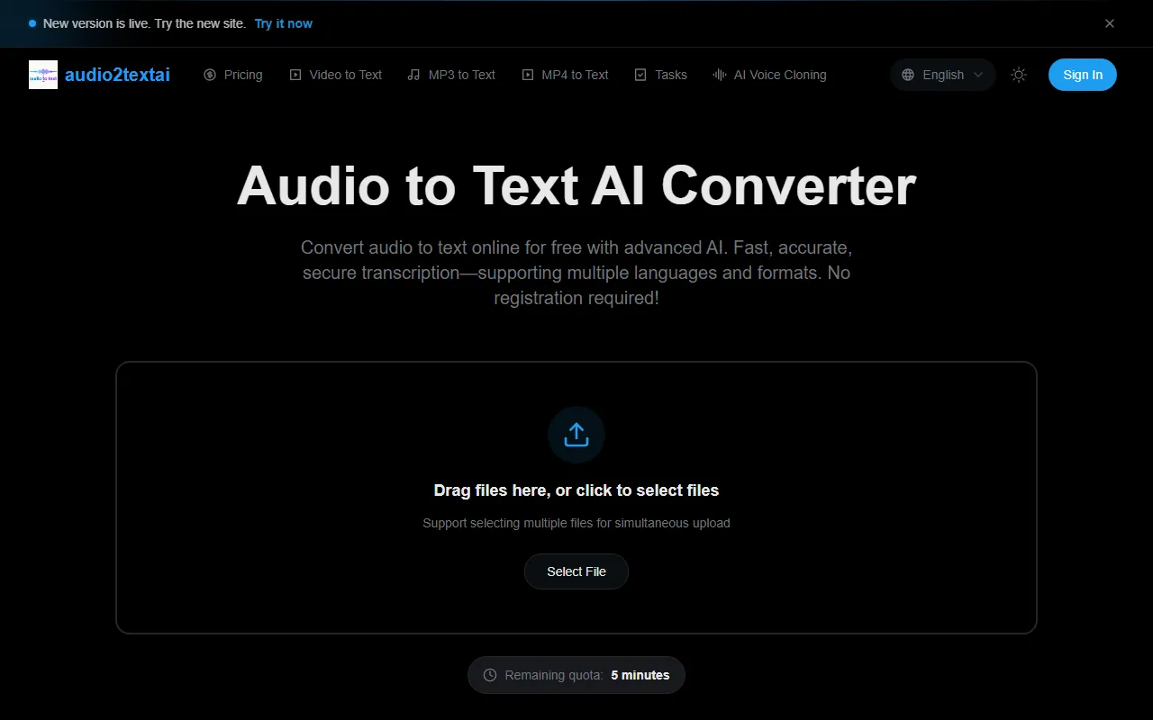 Fast, free AI tool for accurate, secure audio-to-text conversion—no registration needed!