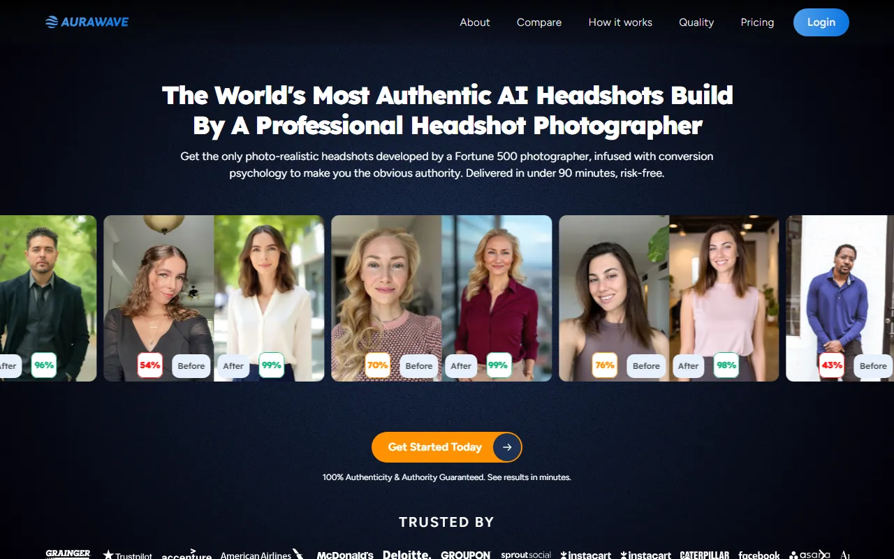 AuraWave - Professional AI headshots in just minutes and save both time and money.