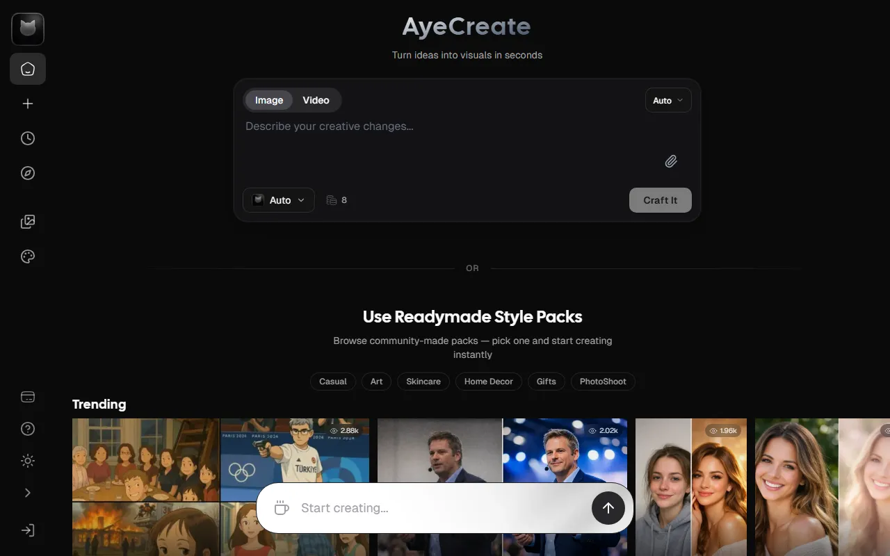 From the moment you open AyeCreate, the workflow is designed to feel natural and efficient. The platform greets you with a clean, organized interface where your most common actions are immediately accessible. Whether you are starting a new project or continuing previous work, everything is just a click or two away, and the learning curve is minimal even for first-time users.