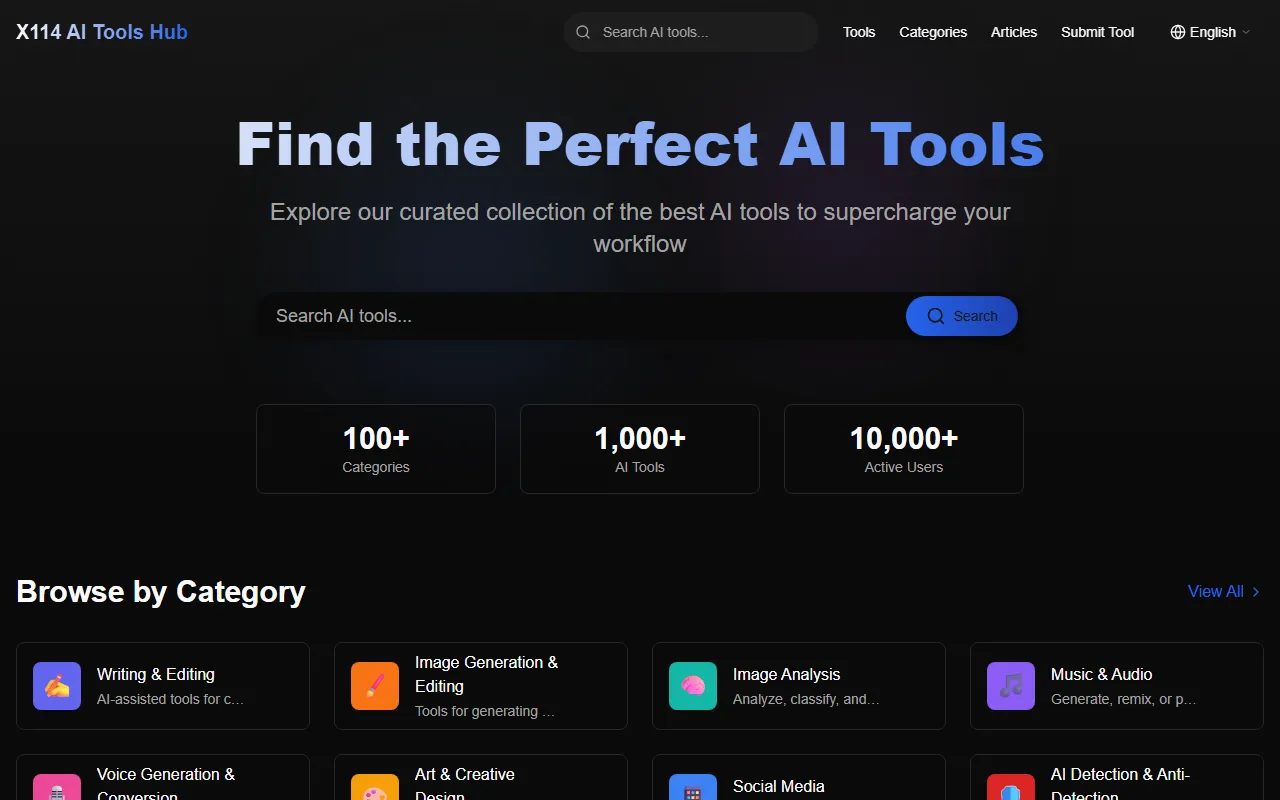 X114 AI Tools Hub: Discover, compare, and review top AI tools for productivity and creativity.