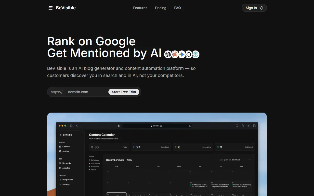 BeVisible tracks AI-generated brand visibility, uncovers content gaps, and boosts SaaS growth.