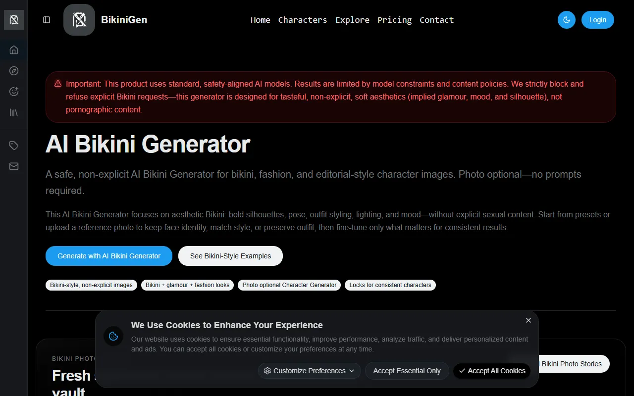 - Creative prompts: BikiniGen includes a dedicated creative prompts engine that processes your inputs intelligently. The system learns from each interaction, delivering increasingly personalized and accurate results the more you use it.