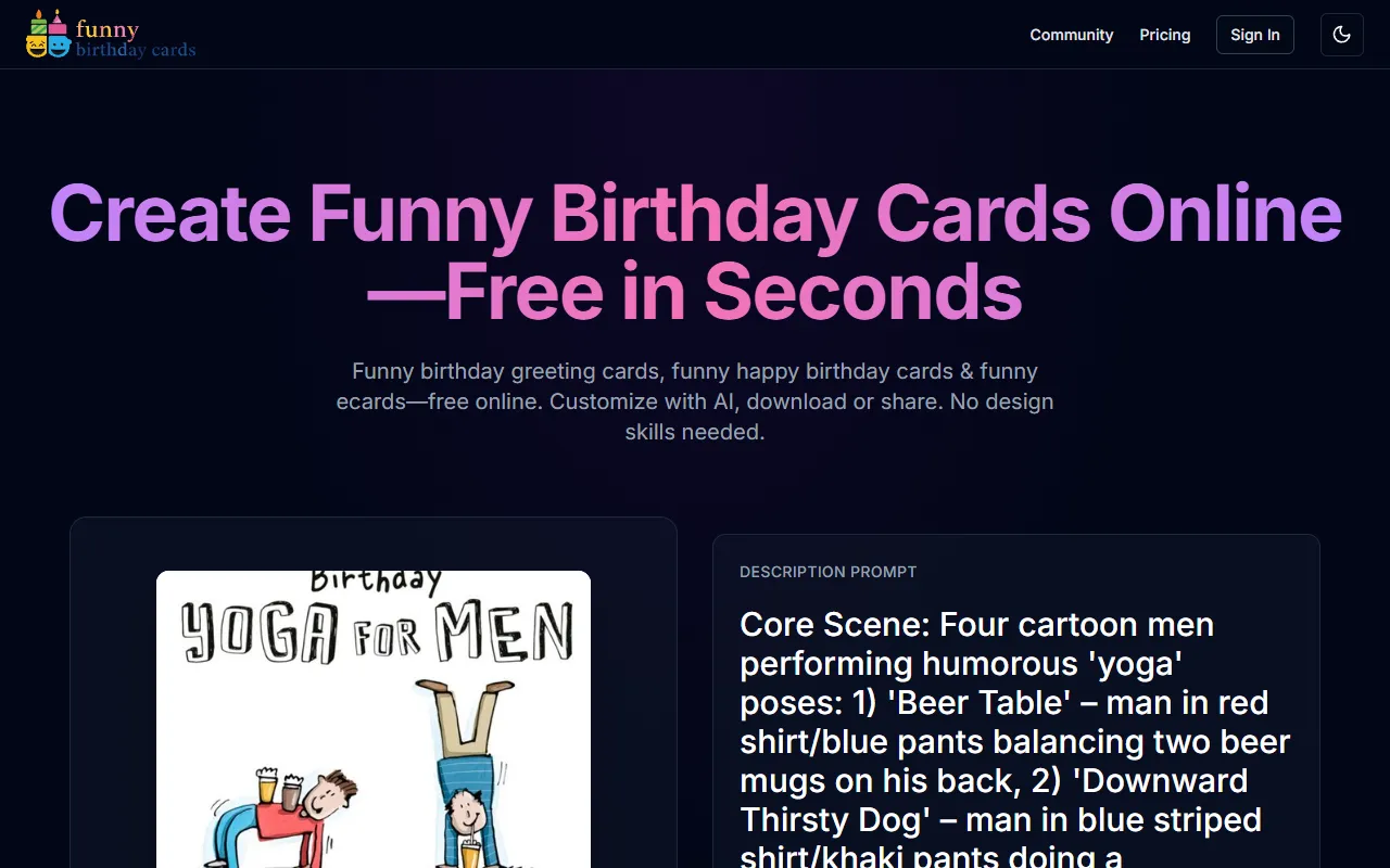 Create and customize hilarious AI-generated birthday cards instantly—no design skills needed!