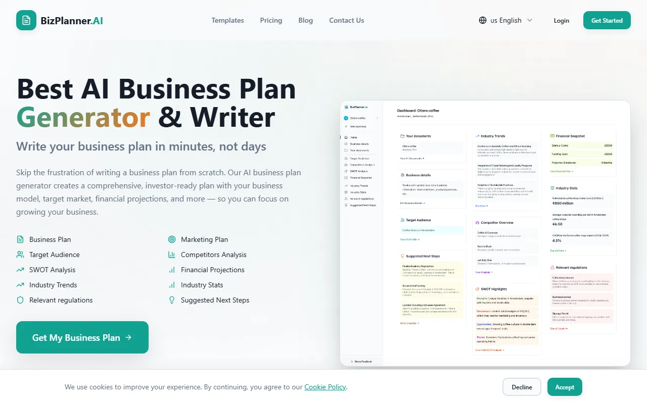 Beginners will benefit from the guided experience and templates that help them get started quickly, while experienced professionals will appreciate the depth of control and customization available beneath the surface. This dual-layer approach makes BizPlanner AI accessible without being simplistic, catering to a wide spectrum of expertise levels.