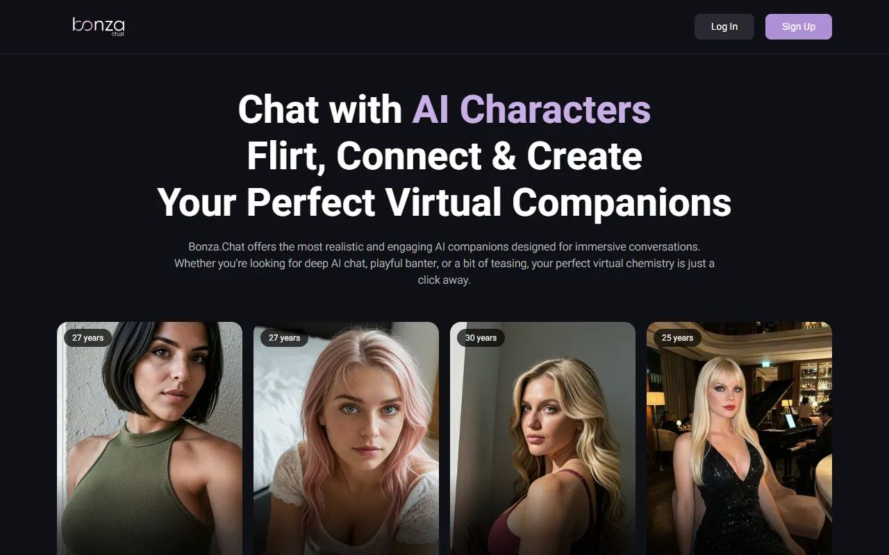 Bonza.Chat offers customizable AI virtual companions for realistic, emotional, and engaging conversations.