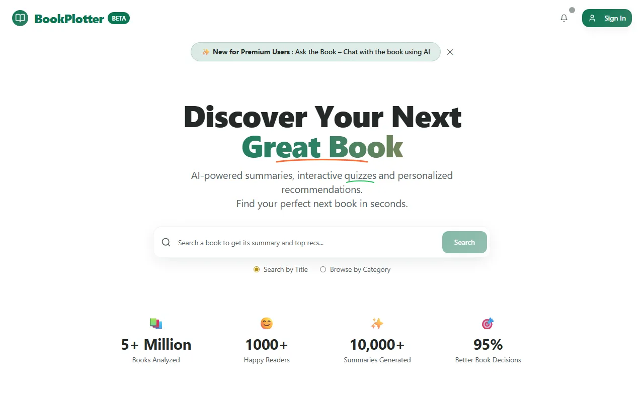 In the evolving world of productivity and workflow optimization, finding the right tool can be the difference between thriving and merely surviving. BookPlotter has positioned itself as a compelling option for professionals, teams, and business leaders who demand more from their AI-powered solutions. BookPlotter delivers quick AI summaries, personalized book recommendations, and customizable reading lists.