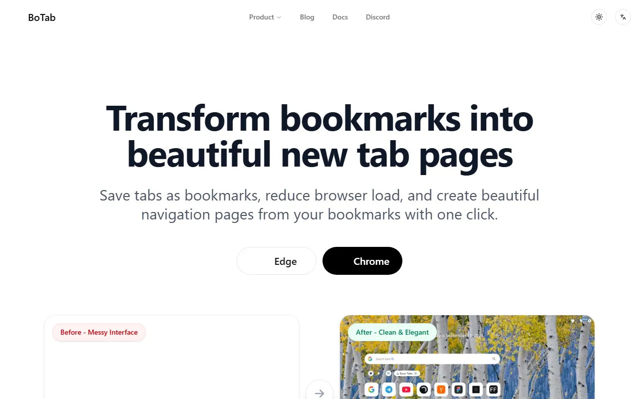 BoTab transforms bookmarks into customizable new tab pages with privacy, layouts, and AI features.