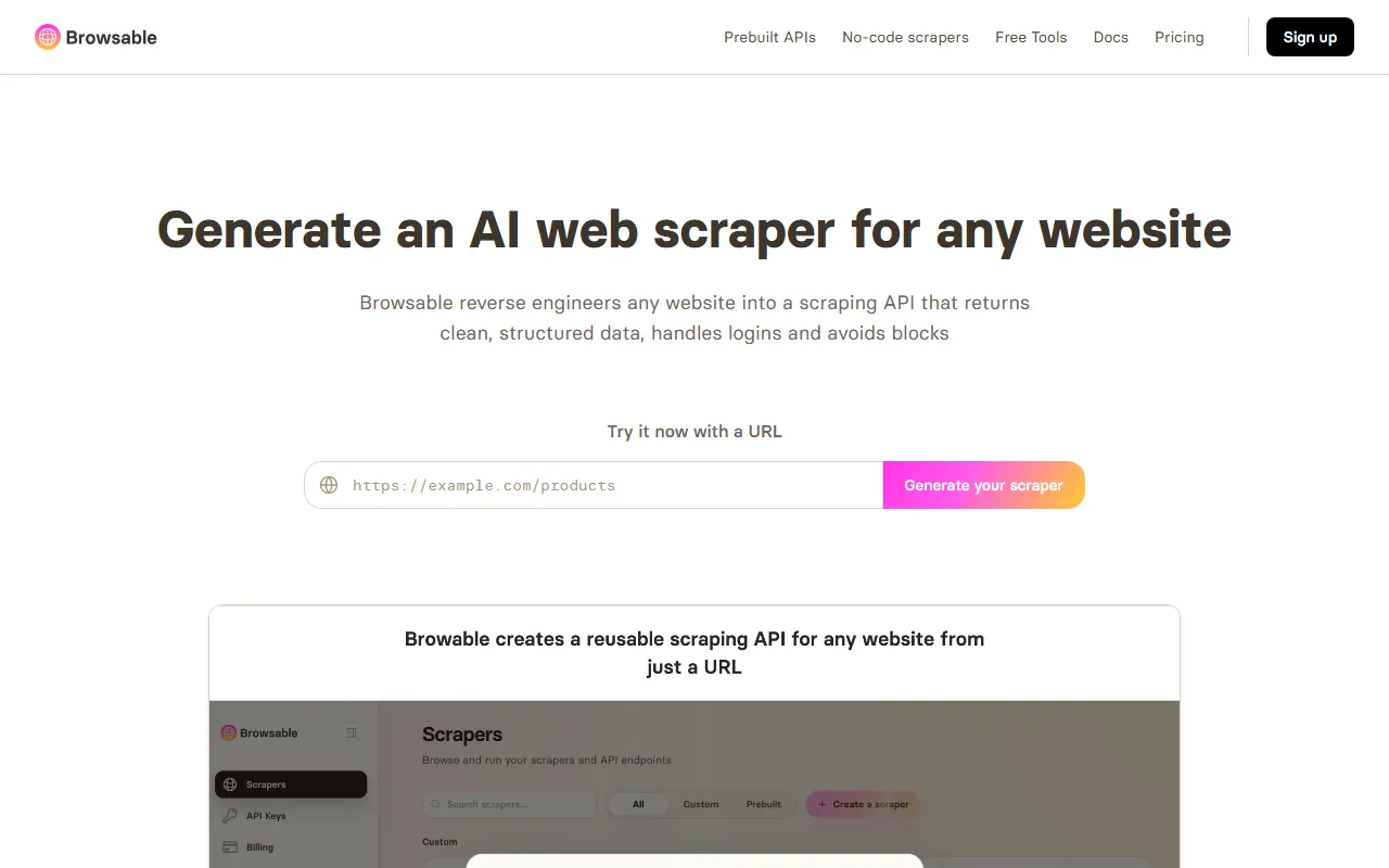 Browsable transforms any website into a reliable, AI-powered scraping API for easy, code-free data extraction.