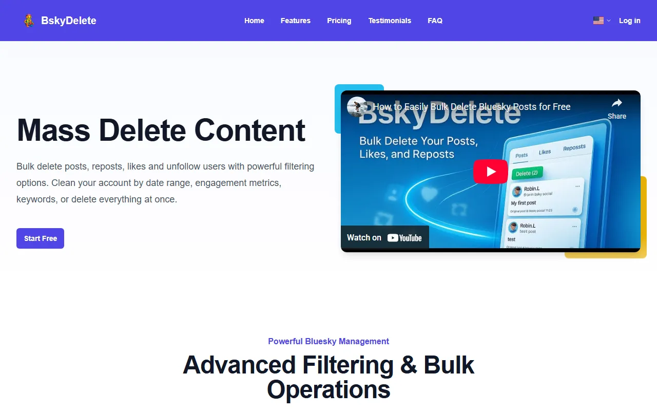 BskyDelete lets users securely bulk delete Bluesky posts, likes, and follows fast.
