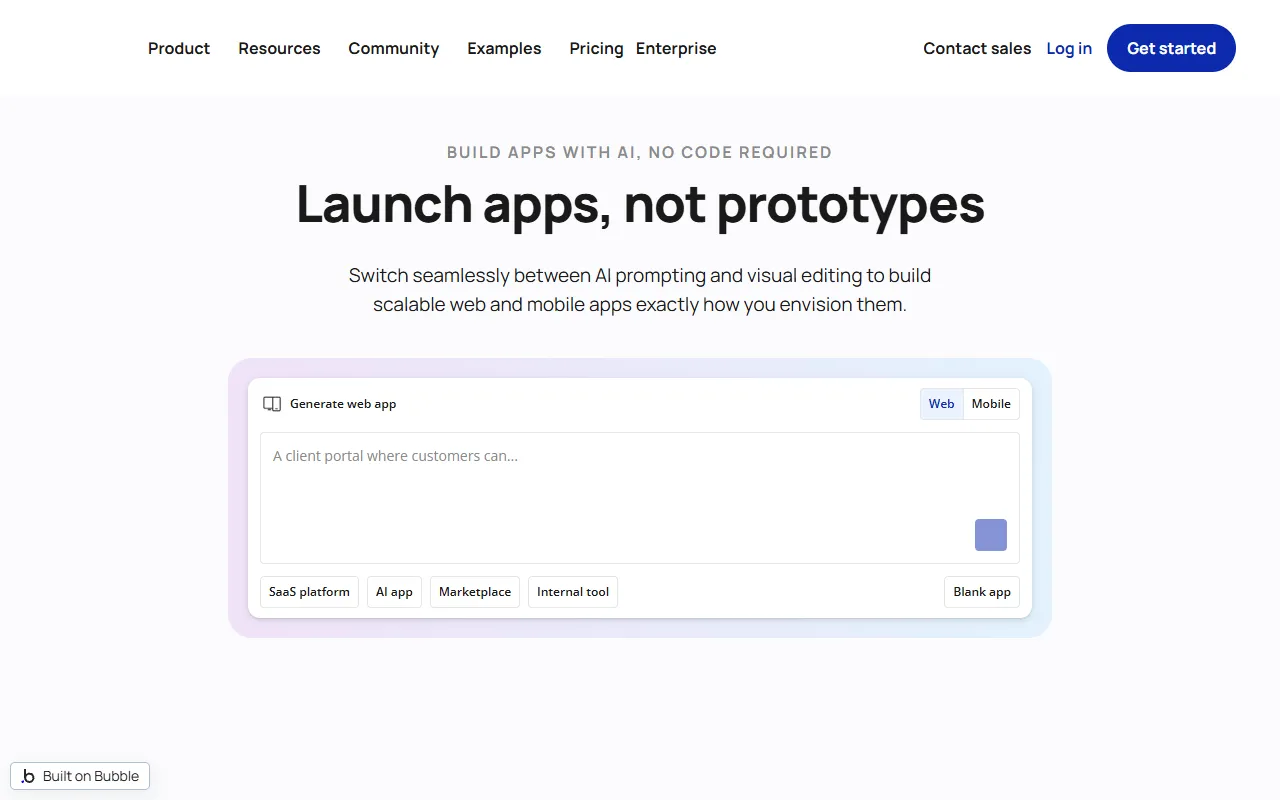 - Web development: With built-in web development capabilities, Bubble AI helps professionals, teams, and everyday users tackle this aspect of their workflow head-on. The AI-driven approach ensures consistent, high-quality output every time while reducing manual effort significantly.